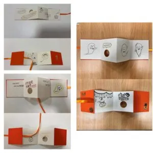 10月はハロウィン前ということで、ハロウィン使様の折りたたみカードを作りました。