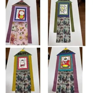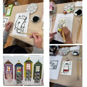 11月の芸術療法では絵手紙の先生を講師に招き、絵手紙で幡を作成しました。